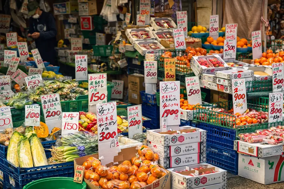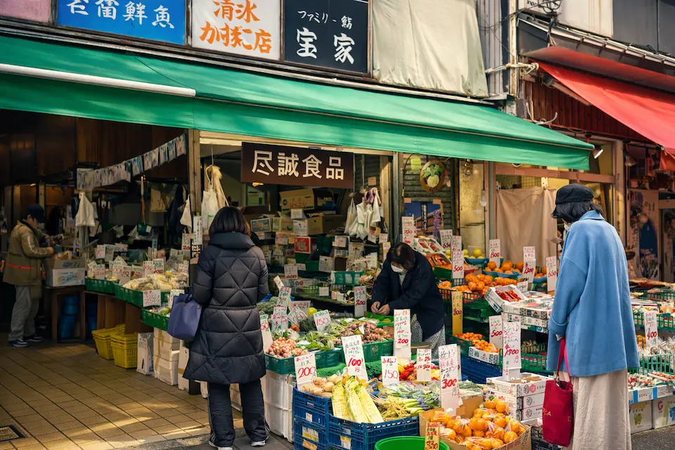 In Yanaka, you’ll often see small neighborhood greengrocers displaying fresh seasonal vegetables and fruits in front of their shops.